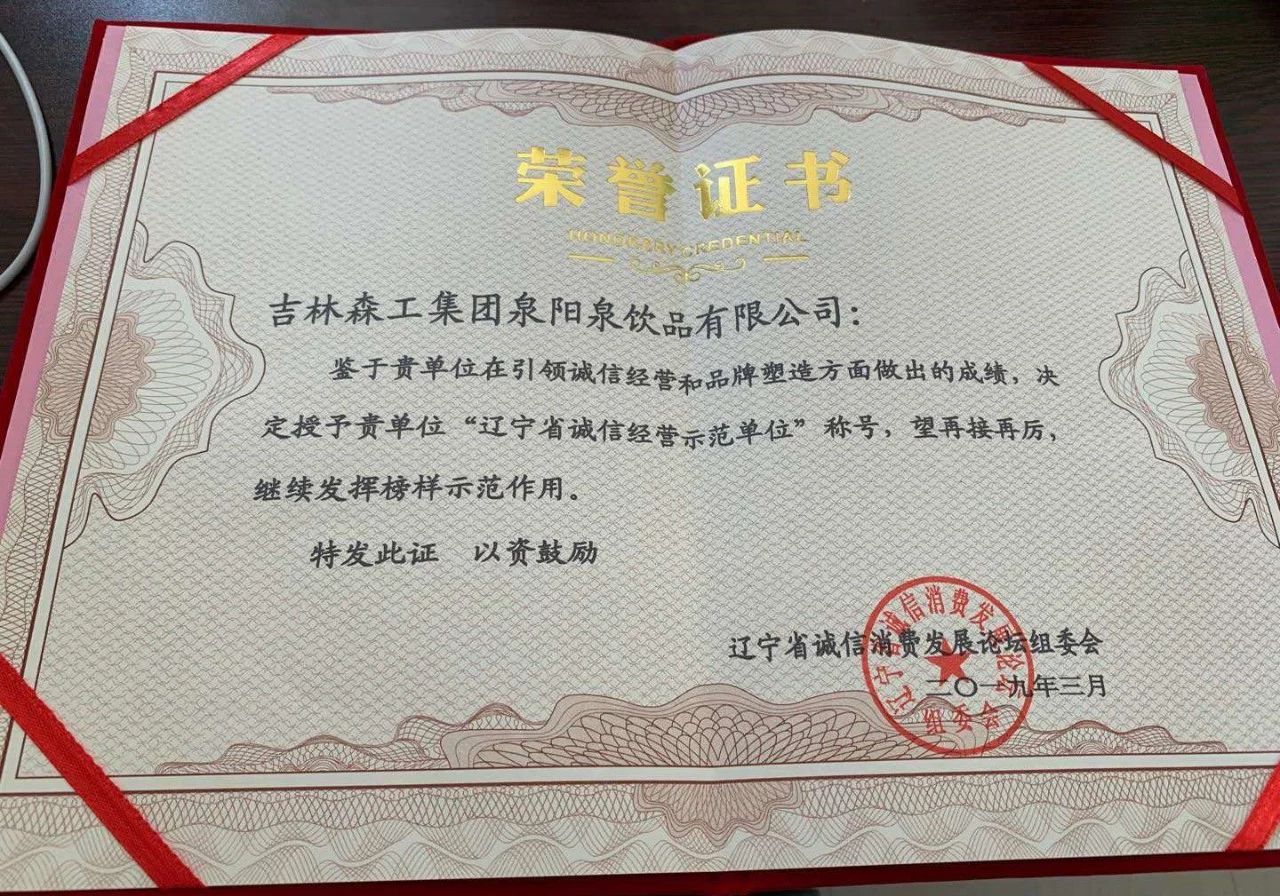 ? ? ? ?泉陽泉在遼寧省獲此榮譽,是消費者對泉陽泉品牌的信任與支持。在今后,泉陽泉將會把長白山天然礦泉水帶給遼沈地區(qū)更多的消費者。獲此榮譽,也意味著泉陽泉”誠信經(jīng)營“的成果受到行業(yè)及主流媒體和機構(gòu)的高度肯定,把長白山天然礦泉水的形象更好地展現(xiàn)在世人面前,泉陽泉將在品牌的道路上成就新的篇章。
